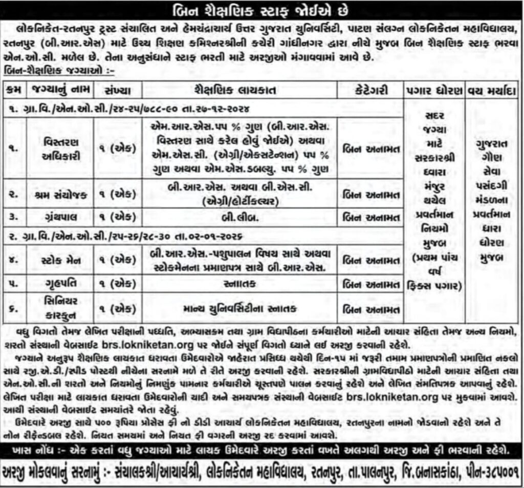 Multiple Job Opening In Lokniketan Mahavidyalaya (College)